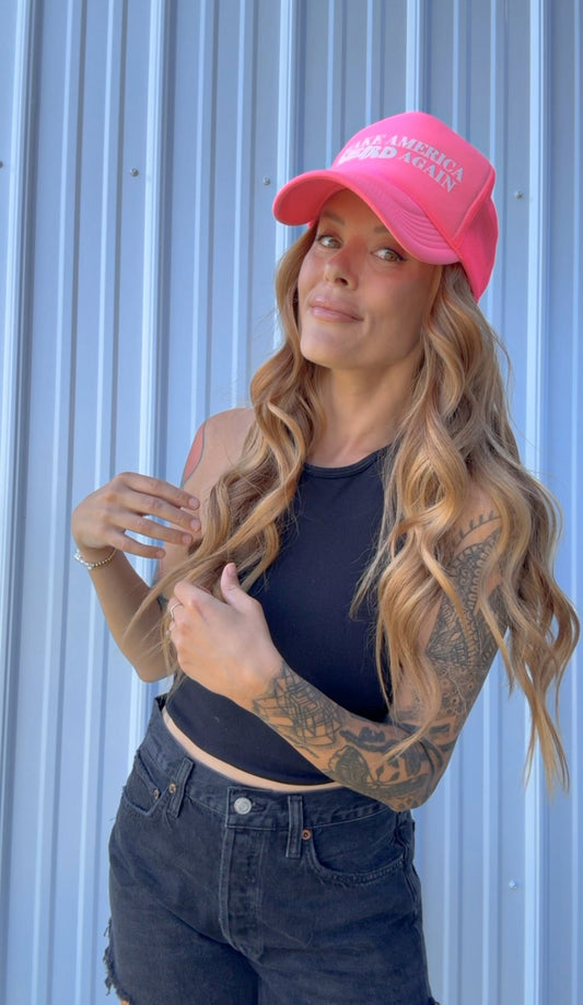 Sold outMAKE AMERICA WEIRD AGAIN TRUCKER HAT